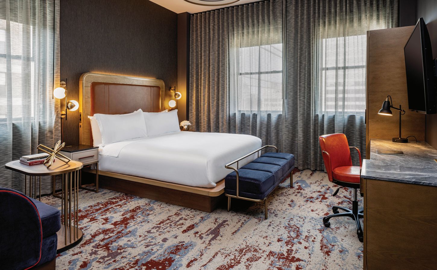 Die Verschmelzung von historischer Bausubstanz und zeitgemäßem Design im The Industrialist ist ein weiteres Paradebeispiel für die „Urban Renewal“-Bewegung in Pittsburgh. Entworfen von Stonehill Taylor und restauriert von Desmone Architects beherbergt das Haus auch eine Lobby-Bar, eine Lounge mit Kamin, sowie das Restaurant The Rebel Room. „Die Wiederbelebung dieses ikonischen Gebäudes fängt den Geist von Pittsburgh ein und ehrt die Macher, die die Stadt aufgebaut haben“, sagt General Manager Robert Brashler.