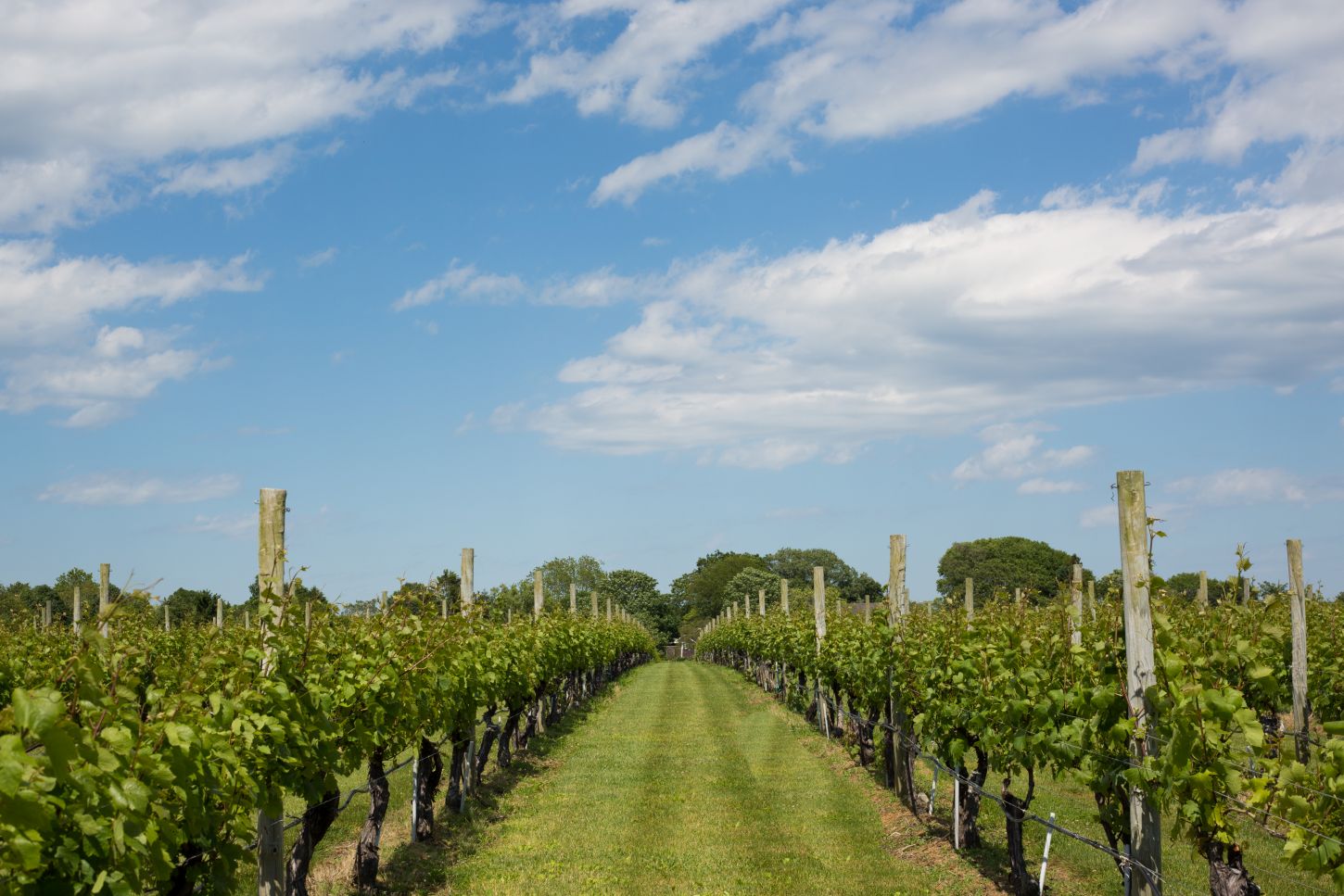 Ein herrlicher Anblick: der blaue Himmel Long Island über den RebenreihenAuch das Weingut Baiting Hollow Farm Vineyard, wo es nicht nur köstlichen Wein zu probieren gibt ist einen Besuch wert: An den Wochenenden kann man hier Live-Musik genießen, sich am Imbissstand mit saisonalen und regionalen Leckereien stärken oder an einer der vielen besonderen Veranstaltungen teilnehmen, die regelmäßig stattfinden.