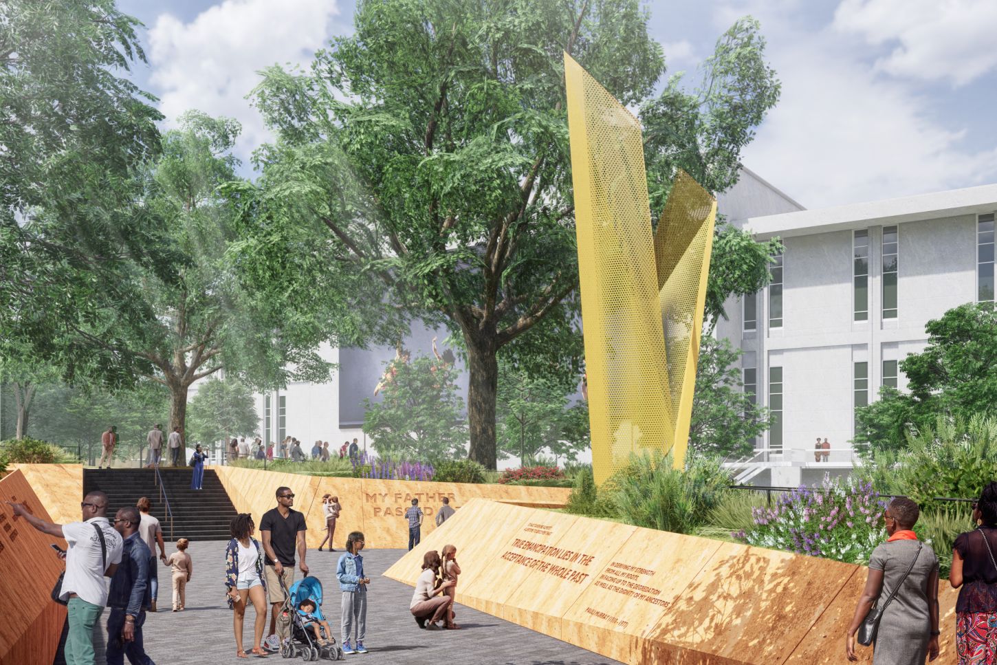 Computergrafik: Ansicht des Freedom ParksDie Konzeption und das Design des Parks stammt aus der Feder des mittlerweile verstorbenen Architekten Phil Freelon. Dieser erreichte nationale Bekanntheit durch seine herausragende Arbeit an ähnlich geschichtsträchtigen Projekten wie dem Smithsonian National Museum of African American History in Washington D. C.. Seine Vision war es, einen Ort zu schaffen, dessen Atmosphäre bei Besuchern einen nachhaltigen Eindruck hinterlässt und sie zum Nachdenken anregt.