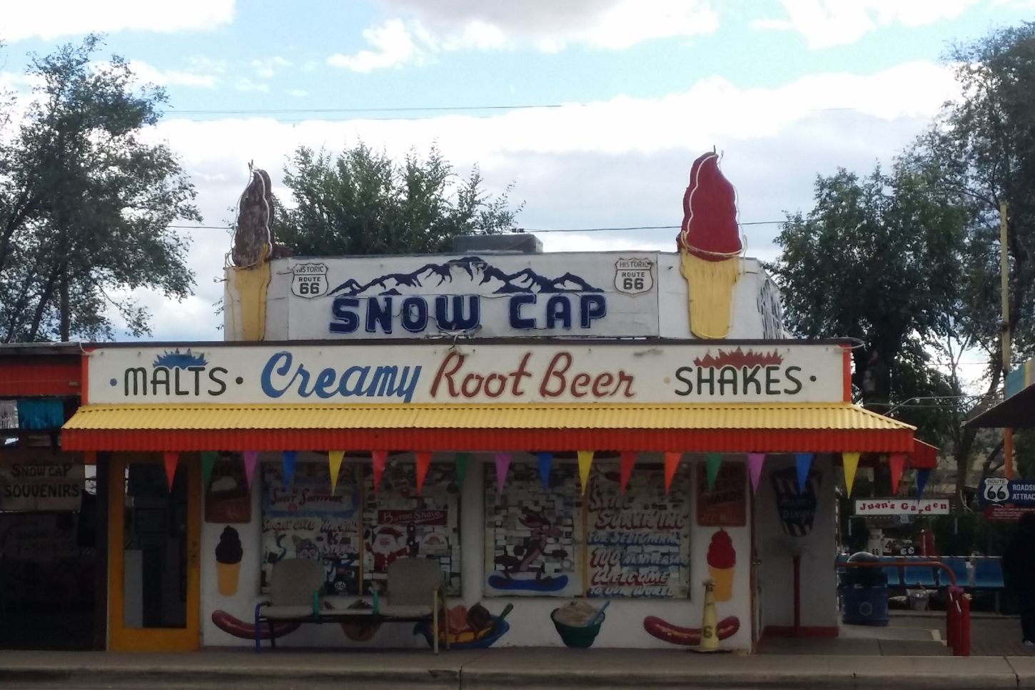 Das Snow Cap in SeligmanWer weiter auf der Strecke fährt, sollte einen Stopp in Seligman einlegen und im typisch amerikanischen Snow Cap für einen leckeren Burger mit Pommes einkehren. Natürlich warten auf der Fahrt entlang der Route 66 noch zahlreiche weitere Sehenswürdigkeiten, eine atemberaubende Landschaft und abenteuerliche Aktivitäten auf die Reisenden.