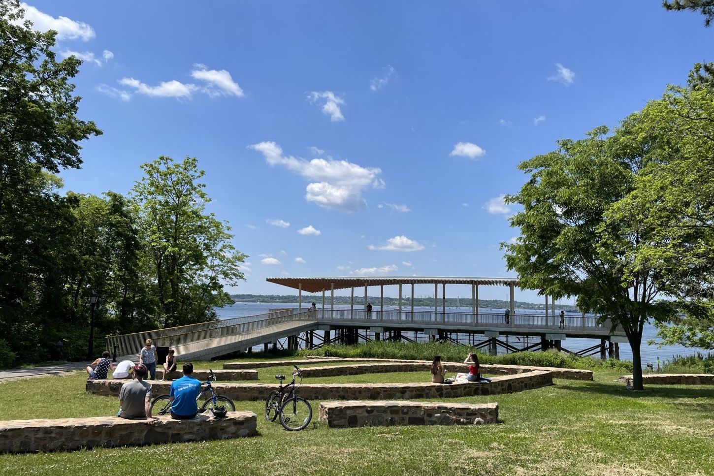 Einige der Bäume, die Olmsted vor fast 175 Jahren pflanzte, sind heute noch zu sehen. Nicht weit vom Haus entfernt kann man an einem abgelegenen Strand zum Wasser hinuntergehen und die Aussicht genießen.