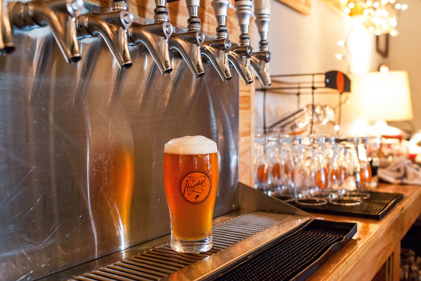 Willkommene Abkühlung: ein frisches Bier in der Flagship BreweryNeben dem Fährterminal befindet sich das einzige Outlet-Einkaufszentrum der Stadt, Empire Outlets. Zu den Geschäften gehören Nordstrom Rack, Patterns & Dots, Cotton On, Lids, Nike, Banana Republic, Gap, H&M, Old Navy, Parfum Europa, Samsonite, iOptics und Guess. Die einladenden Außenbereiche, die Imbisswagen und die Aussicht auf das Wasser machen das Einkaufszentrum zu einem idealen Ort, um den Nachmittag zu verbringen.