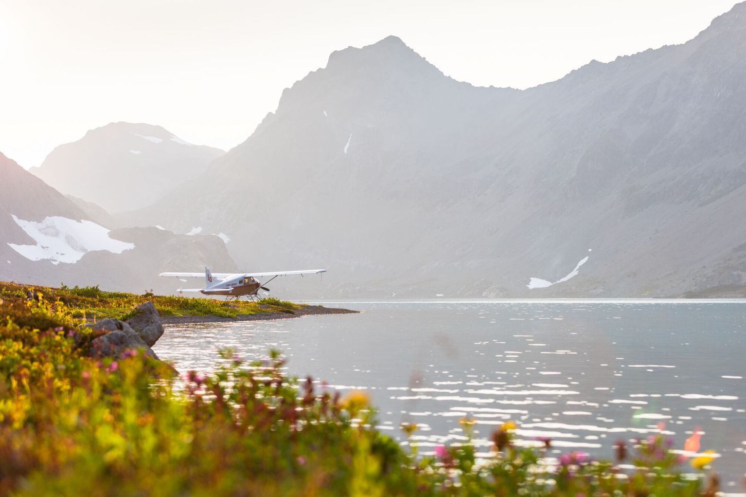 Im Norden von BC wartet eine Wasserflugzeug-Tour mit Alpine Lakes Air ab Smithers, der Stadt der Outdoorabenteuer. Die 3 Seen-Tour führt über die Telkwa Range und auf den Nanika Lake, bevor es zu zwei weiteren Seen, über die Hängegletscher des Atna Peak und bis auf 2.740 Meter Höhe geht, um sechs weitere Gletscher zu besuchen.