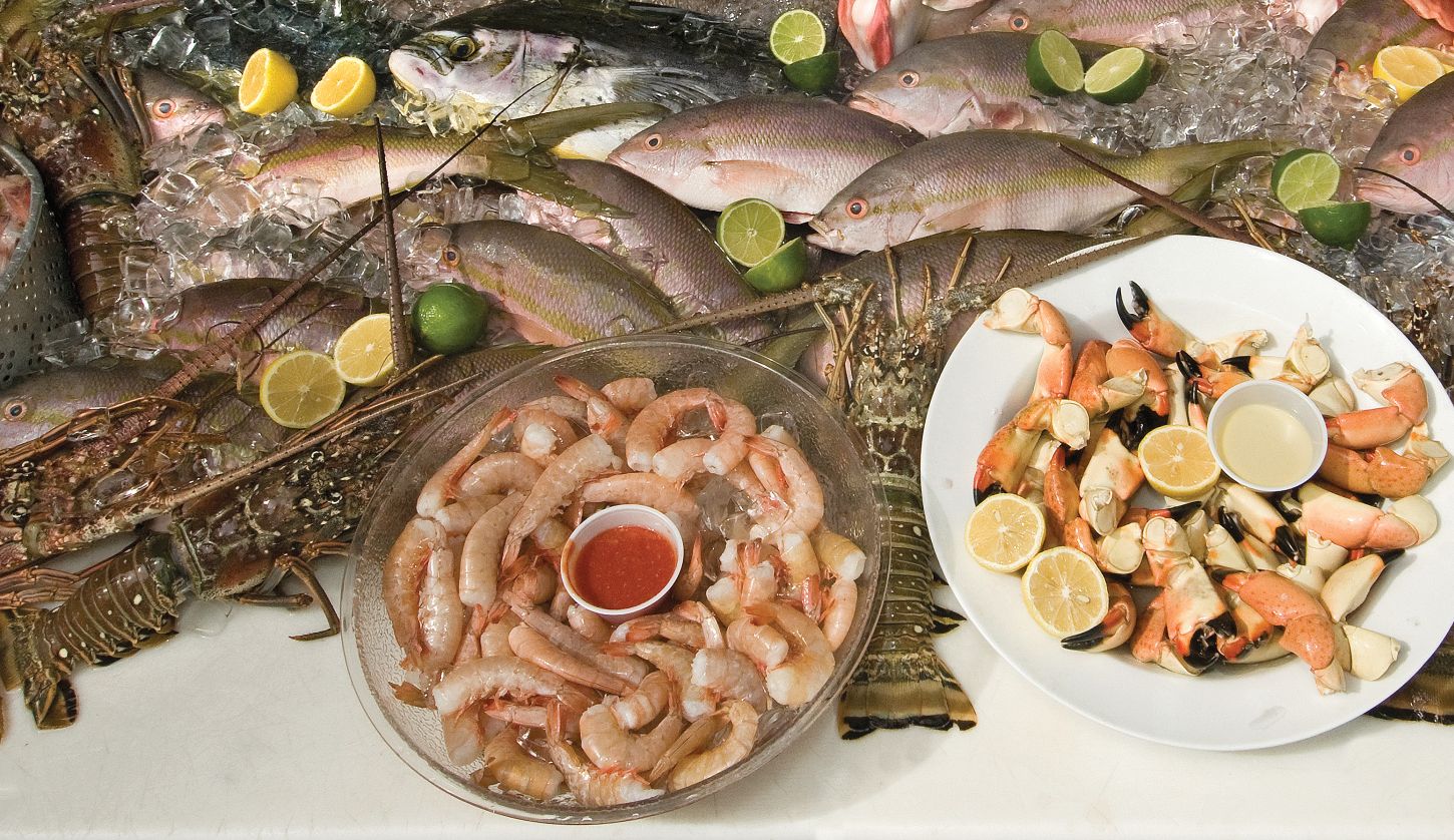 Hier kommen lokale Delikatessen wie gegrillte Langusten, Steinkrabben-Scheren mit Limettensenfsauce, Pink Shrimps, Conch Ceviche und Conch Fritters auf den Tisch.
