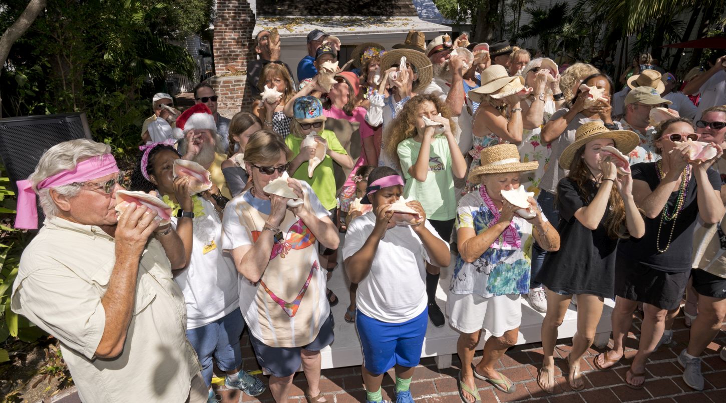 Am 5. März 2023 um 12 Uhr geht es los: Die Teilnehmer des 60. Conch Shell Blowing Contest, der auch „Conch Honk“ genannt wird, versammeln sich im Garten des ältesten Hauses von Key West in der 322 Duval Street. Wer den harmonischsten, längsten, lautesten und ungewöhnlichsten Ton hervorbringt gewinnt.