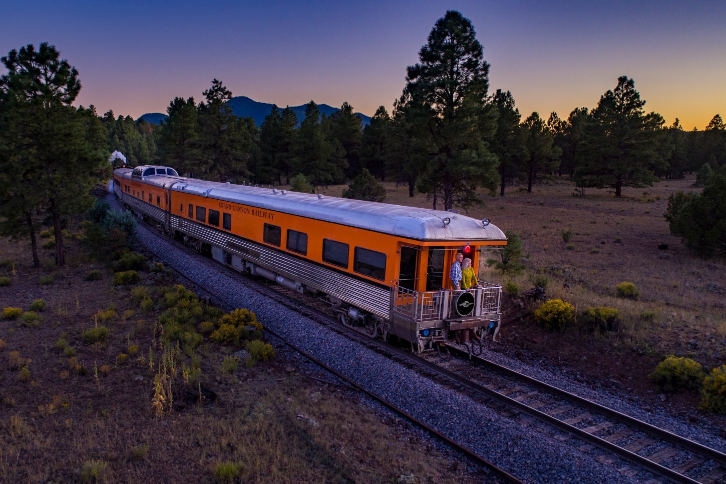 Unvergleichlich luxuriös wird die Fahrt in einem privaten Zug mit den Rail Baron Charters der Grand Canyon Railway: Wer seinen eigenen Zug chartert, kann zwischen Diesel-, Elektro- oder Dampflok wählen. Das Panorama aus der verglasten Aussichtskuppel ist atemberaubend, wird von Bordunterhaltung mit Musikern und singenden Cowboys begleitet.