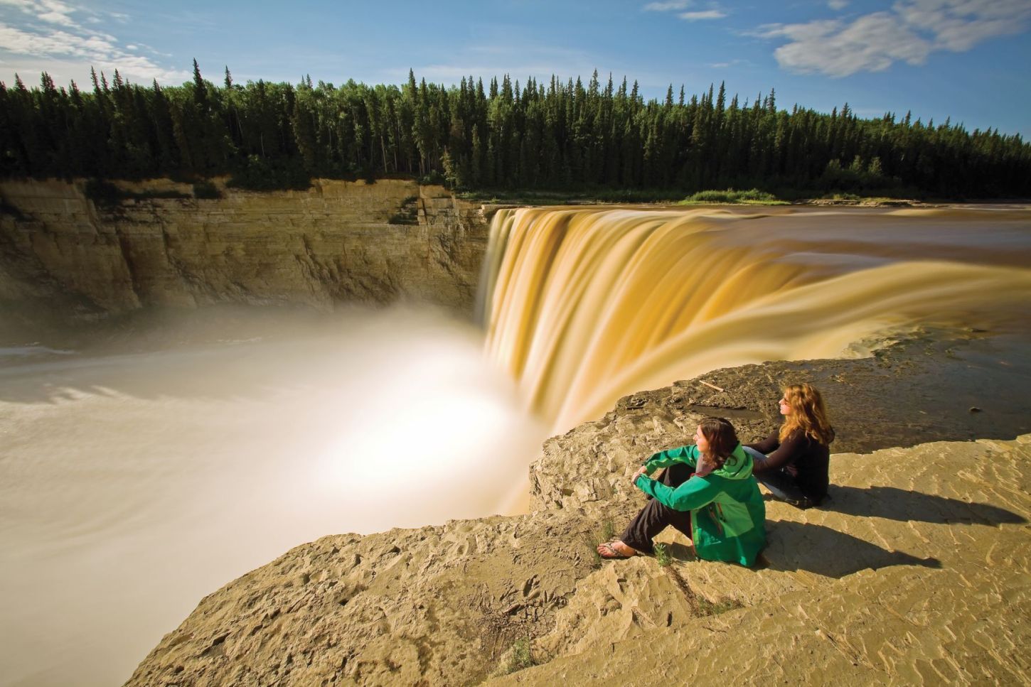 Bereits 45 Minuten hinter der Grenze kann man im Twin Falls Gorge Territorial Park unweit der kleinen Stadt Enterprise die Kraft und das Tosen des mächtigen Hay River spüren, wenn er sich an den Alexandra Falls mehr als 30 Meter in die Tiefe stürzt. Nur vier Kilometer flussabwärts erreicht man über einen kleinen bewaldeten Pfad einen zweiten Wasserfall – die nicht weniger eindrucksvollen Louise Falls.