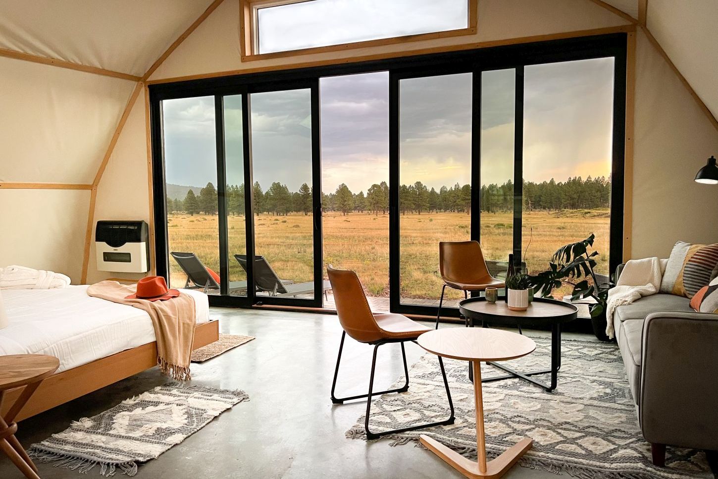 Das Glamping-Erlebnis in der Nähe des Grand Canyon lockt im Herbst mit idealen Temperaturen, um die kupferfarbene Wüstenlandschaft in der entspannten Nachsaison am Grand Canyon zu genießen. Die Luxuszelte verfügen über ein Kingsize-Bett, ein Badezimmer und einen Herd. Zum Angebot gehören Morgenyoga im Sonnenaufgang und Abenteuer wie private Wandertouren oder Jeep-Safaris.