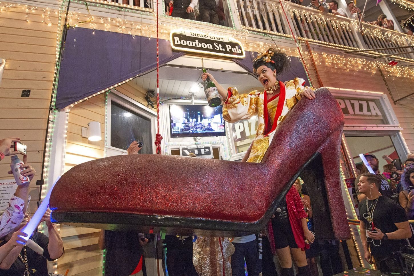 Am letzten Tag des Jahres wird in Key West ausgelassen gefeiert. Zu den traditionellen Silvesterbräuchen gehören die legendären „Drops“ um Mitternacht. Besonders spektakulär ist der riesige rote High Heel, in dem eine Drag Queen am Bourbon St. Pub/New Orleans House zu Boden schwebt. Im First Flight Island Restaurant & Brewery, dem Geburtsort der Fluggesellschaft Pan Am, können Besucher auf einer Silvesterparty im Gatsby-Stil um Mitternacht den „Flug“ einer uniformierten Stewardess in einem nachgebauten Flugzeug miterleben.