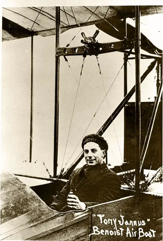 Antony "Tony" Jannus im Benoist Airboat "Old 43", Baujahr 1913
