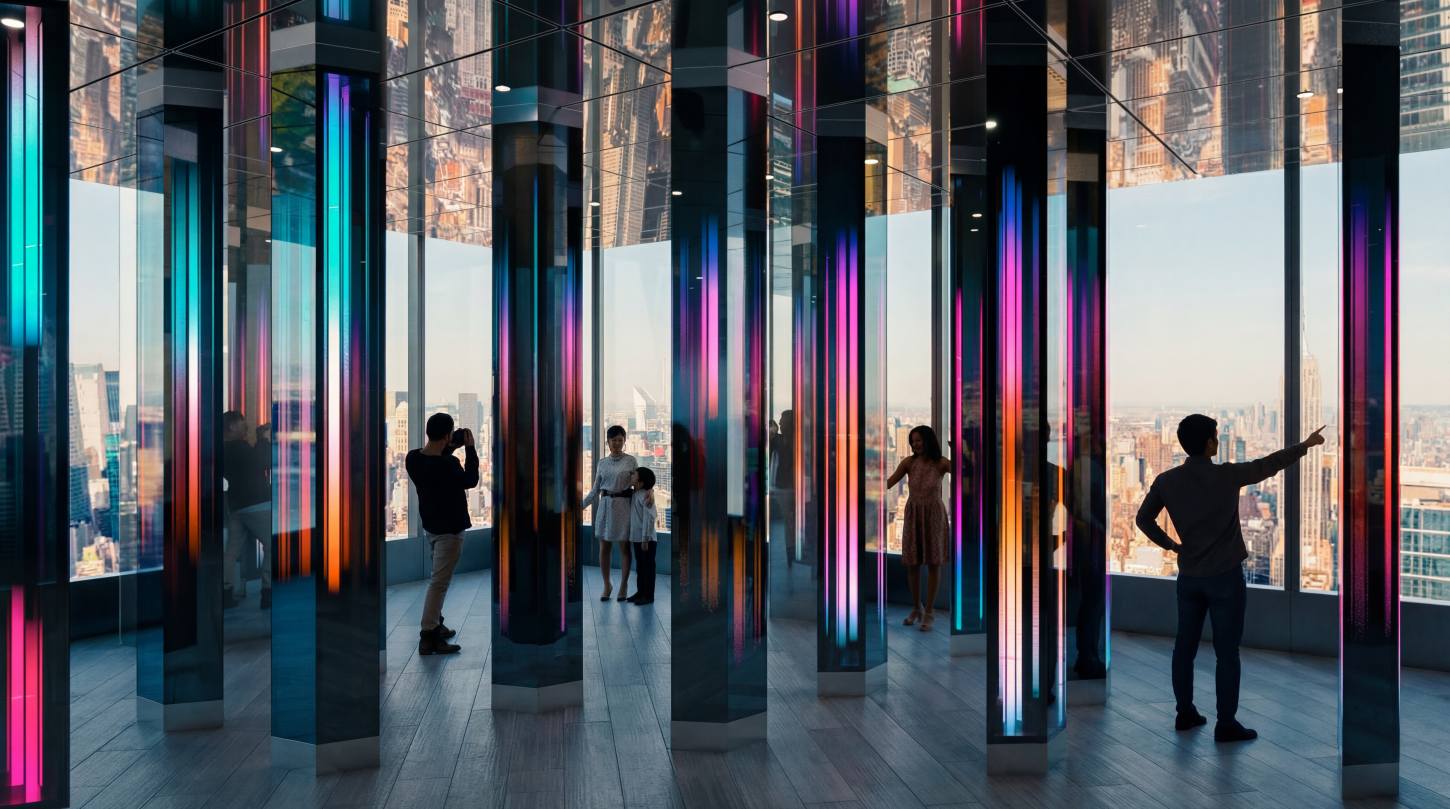 Die Eröffnung ist für Sommer 2026 geplant. Die groß angelegte, millionenteure Umgestaltung lässt Besucher in eine kaleidoskopische Welt aus Licht, Farbe und Bewegung eintauchen, während sie sich 335 Meter über dem Straßenniveau in der Skyline von Manhattan befinden.