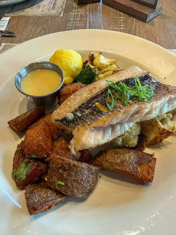 Ich wählte den Tiki Shack Burger: Saftiges Patty mit Ananas, Bacon und scharfer Aioli, serviert mit knusprigen Fries – pure Comfort Food. Ivonne wählte den gegrillten Snapper, frisch aus der Region, mit Zitronenbutter und Gemüse – leicht und geschmackvoll, typisch Florida. Portionsgrößen sind großzügig, Preise um 155-40 USD pro Hauptgericht.
