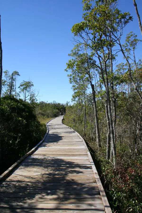 Für alle Landratten (oder nach der Bootstour) empfiehlt sich noch ein Spaziergang über den Boardwalk zu einem Aussichtsturm, der einen guten Überblick über die Landschaft bietet. Natürlich wurde auch an die Autofahrer gedacht: Der "Swamp Island Drive" führt zu weiteren interessanten Punkten wie dem "Cheeser Island Homestead", dem Haus einer der ersten Siedler hier, das ebenfalls besichtigt werden kann.