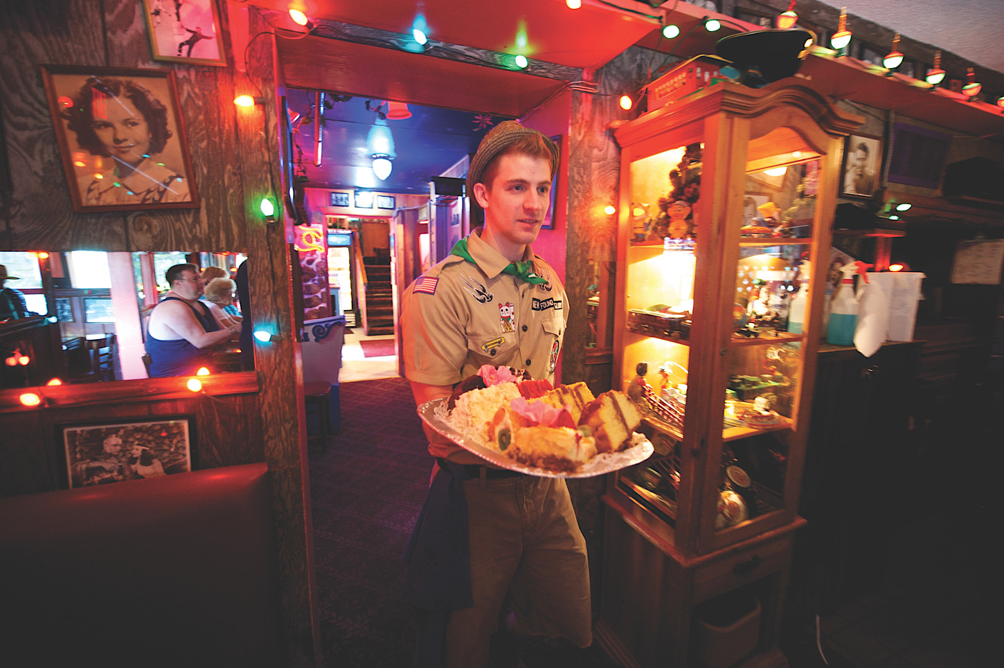 Nicht zu vergessen die riesigen spektakulären Kuchen und Desserts! Im Inneren des Restaurants sind Sammlungen alter Spielzeuge von den 1930er Jahren bis heute, Bilder früherer Kinostars und Weihnachtsdekoration in Hülle und Fülle zu bestaunen.