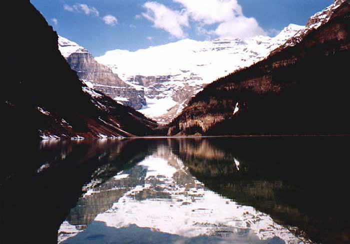 Entstanden ist der See durch eine Endmoräne, die der Victoria Gletscher bei seinem letzten Rückzug vor etwa 8.000 bis 10.000 Jahren hinterließ und nun wie eine natürliche Staumauer fungiert. Auf diesen Wall wurde 1899 das Chateau Lake Louise errichtet, mit Blick auf den See und dem dahinter aufragenden Mount Victoria.