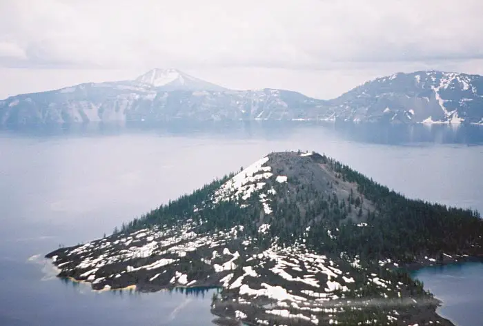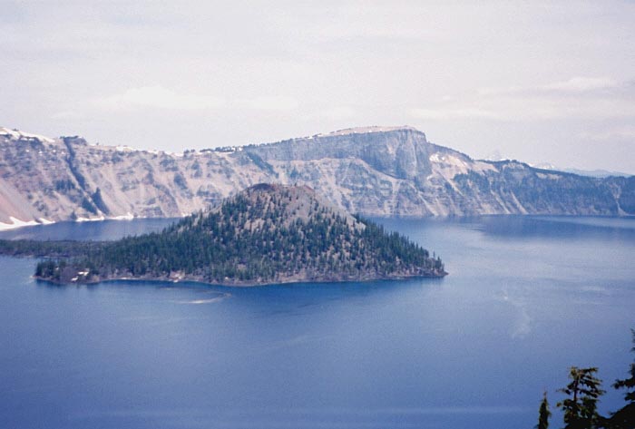 Wenn das Wetter es zulässt, kann man ab Mitte Juni den Crater Lake auf dem Rim Drive umfahren und an über 25 Aussichtspunkten anhalten. Dabei kann man aus verschiedenen Perspektiven den See und die darin liegende Wizzard Island betrachten. Der Name der Insel erklärt sich dadurch, dass sie dem Spitzhut eines Zauberers ähnelt. Sie ragt 200 m aus dem Wasser und ist ein Aschekegel. Der Sage nach ist die Insel der Kopf von Llao, dem Herren der Unterwelt. Dem schlug Skell, der Herr der Oberwelt in der letzten welterschütternden Schlacht den Kopf ab und verstümmelte ihn.