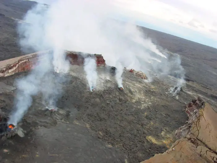 Die Eruptionen des Kilauea, der ein Schildvulkan ist, erfolgen manchmal auf dem Gipfel, dann wieder entlang der Rift- oder Spaltenzonen, die sich an seinen östlichen und südwestlichen Flanken bis zur Küste und noch einige Kilometer darüber hinaus über den Meeresgrund erstrecken. (Riftzonen nennt man die Schwachstellen kilometerlang vertikal verlaufender klaffender Risse an den Seiten eines Vulkans. Nach Ansicht der Geologen entstehen solche Frakturen unter dem Druck sich unterirdisch ansammelnden Magmas.)