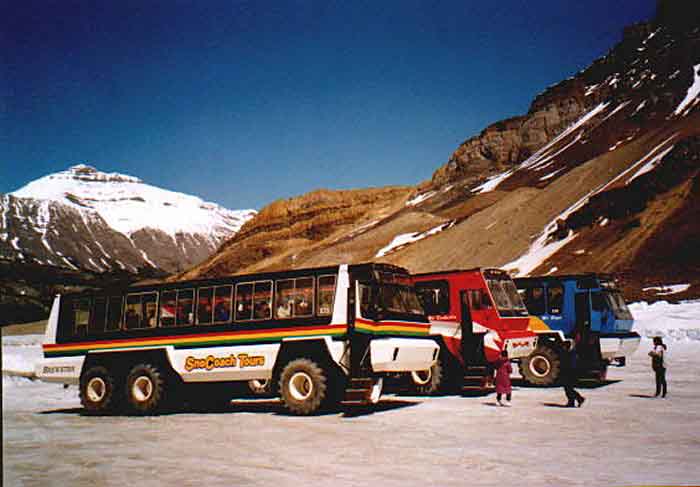 Vom Icefield Center starten Reisebusse zur Abfahrtsstelle der Snow Coaches, die auch den normalen Touristen direkt aufs Eis bringen.