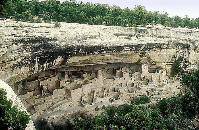 Daher der Name Pueblo Indianer (Pueblo = span. Wort für Dorf). Die baulichen Fähigkeiten gipfelten zwischen dem 11. und 13. Jahrhundert im Bau der mehrstöckigen, aus Lehmziegeln gefertigten Cliff Dwellings (Felswohnungen), deren Ruinen heute als Hauptattraktionen im Park zu bewundern sind. Am Ende des 13. Jahrhunderts verließen allmählich die Bewohner von Mesa Verde für immer ihre Cliff Dwellings und zogen, zusammen mit vielen anderen Pueblo Bewohnern, überwiegend in Richtung Süden an den Rio Grande. Waren es Hungersnöte, ausgelöst durch überbeanspruchte und daher ausgelaugte Böden, Kahlschlag der Wälder im Umkreis der Siedlungen, die 24 Jahre andauernde Dürre ab 1276 n. Chr. oder war es der Druck fremder Nomaden-Indianer, die aus dem Norden eindrangen ? Bis heute sind die Gründe nicht geklärt.