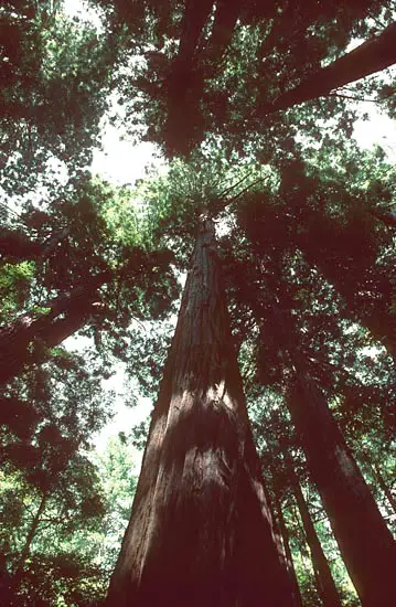 Die Redwoods oder Küstensequoia gehören zur Gattung der Sumpfzypressen (Taxodiaceae) und sind die höchsten Bäume der Welt. Der höchste Baum dieser Gattung steht im Redwood N. P. im Norden Kaliforniens und ist 112 m hoch. Die Küstensequoias können bis etwa 2000 Jahre alt werden. Obwohl die Redwoods und die Riesensequoia aus dem Sequoia N. P. zur gleichen Gattung gehören, unterscheiden sie sich doch in einigen Punkten deutlich. Am offensichtlichsten ist es am Stamm zu erkennen. Die Küstenredwoods sind wesentlich schlanker (Durchmesser "nur" bis 7 m), dafür aber einige Meter höher. Bei der Vermehrung verfolgen sie unterschiedliche Strategien. Während sich die Sequoias nur durch Samen vermehren, geschieht dies bei den Redwoods fast ausschließlich durch Austriebe an Wurzeln und an besonderen Verdickungen am Stamm toter und lebender Bäume. Die Redwoods sind sehr widerstandsfähig gegen Insekten, Pilze und Feuer (sie besitzen nur sehr wenig brennbares Harz und eine steinharte, bis 30 cm dicke Borke). Sie sind Flachwurzler, da sie ihre Wurzeln nur etwa 2 m tief in den Boden schlagen, dafür aber bis zu 40 m weit. Das Unterholz wird überwiegend von Farnen, Azaleen, Flechten, Lorbeerbäumen, Ahorn und Douglastannen gebildet.