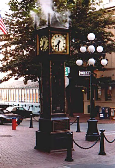 Ein Stück weiter östlich liegt Gastown, die Altstadt von Vancouver. Hier befindet sich auch die berühmte Steamclock, eine dampfbetriebene Uhr, die zu jeder vollen Stunde das Glockenspiel von Big Ben auf ihren Pfeifen imitiert. Trotz des gotischen Äußeren ist die Uhr nicht so alt wie sie aussieht. Der Erfinder und Uhrmacher Ray Saunders baute die Uhr 1977, um Dampf aus den Untergrundleitungen abzuleiten, die zur Beheizung örtlicher Gebäude benutzt wurden.