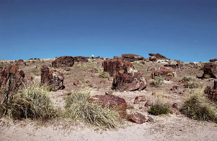 versteinerte Stammstücke hinter dem Petrified Forest Museum