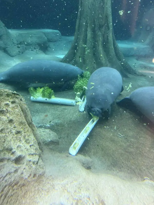 Eines der absoluten Highlights für Ivonne und mich waren die Manatees im Parker Manatee Rehabilitation Habitat. Diese sanften Riesen, oft als „Seekühe“ bezeichnet, sind ein Symbol für Floridas empfindliche Ökosysteme. Das Habitat ist wie ein natürlicher Cypress-Sumpf nachgebaut, mit klarem Wasser, das euch erlaubt, die Tiere aus nächster Nähe zu beobachten. Wir bestaunten wie die geretteten Manatees – oft verletzt durch Boote oder Verschmutzung – hier gepflegt werden, bevor sie in die Wildnis zurückkehren.
