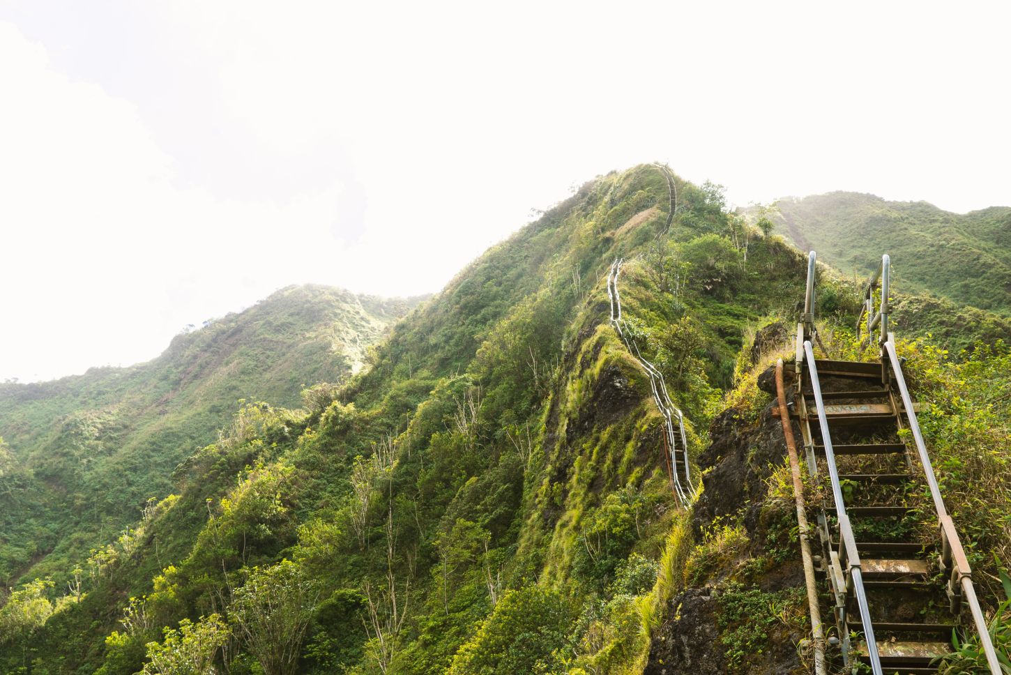 Die Haiku-Stufen oder auch bekannt als „Stairway to Heaven“ bieten eine der malerischsten Aussichten in Hawaii. Obwohl das Besteigen der Stufen illegal ist und du mit einer Geldstrafe rechnen musst, gibt es in der Nähe einige andere Wanderungen, die ähnliche Aussichten bieten.